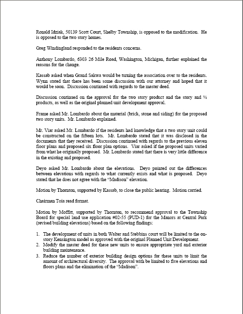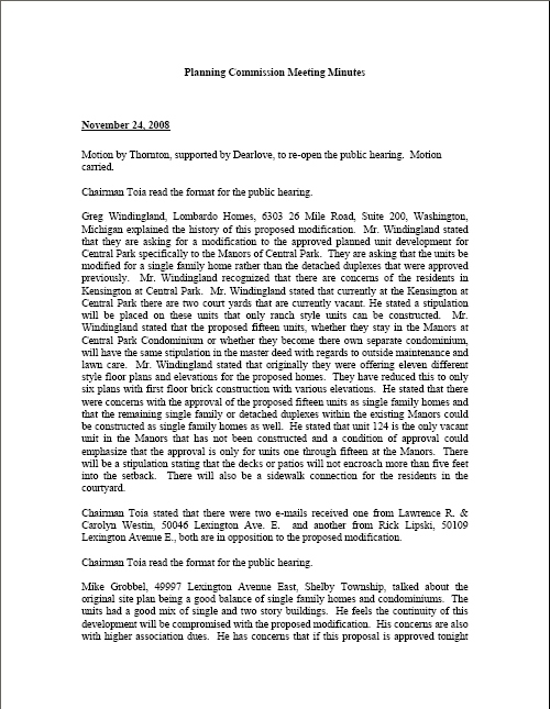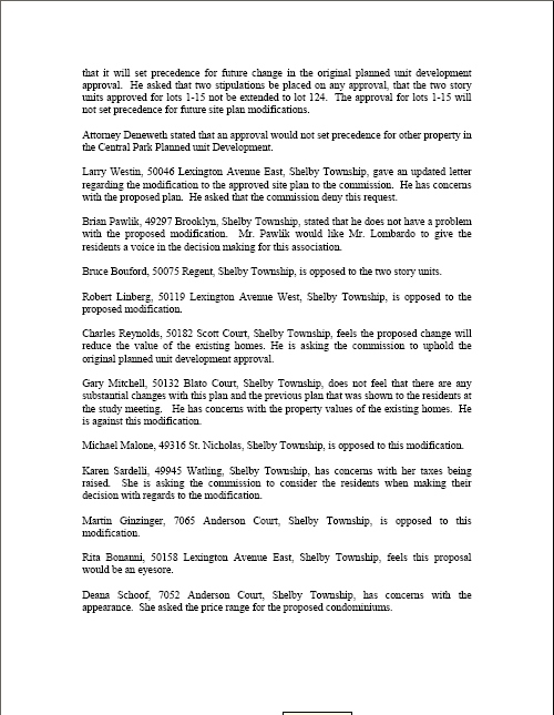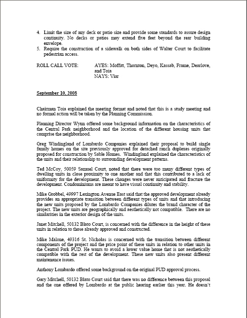 Pages 99 through 121 of the Information Packet include minutes from the Feb. 27 and Jan. 16, 2008 meetings on this proposal, plus all correspondence received from the public and the petitioner.