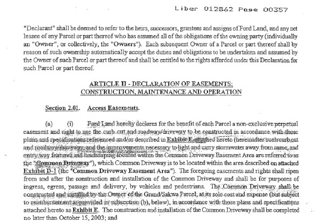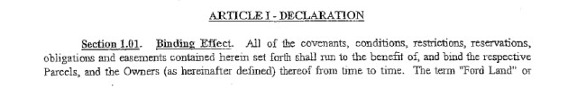 The owners of the (7) parcels identified at the top of this page are the current owners of what had been the "Ford Land Parcel" and by virtue of the Declaration, they have assumed the duties and obligations of the "Declarant" ("Ford Land"). The Central Park Master Association has assumed the rights and responsibilities of Grand/Sakwa.