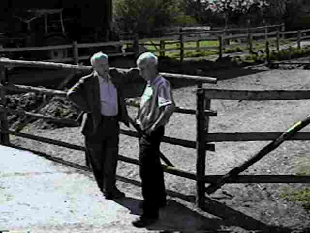 Johannes Grobbel with Karl-Hans Voss (right), in the barn yard at the Schleimen Hof in Lenne.
