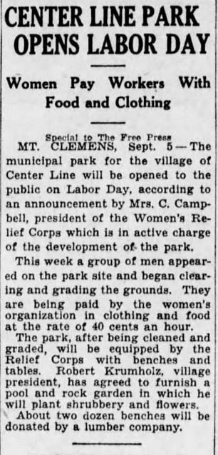 Robert Krumholz was the Center Line Village President in 1931 when he agreed to allow the easterly portion of his property to be used as a Village Park.