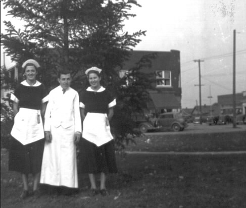 Josephine was the daughter of "Ma" Zott and she would later marry Richard Carney. Charles and Lucille would marry each other in 1940. This photo was taken in the empty lot just north of Center Line Recreation. In the background is Schuster's Hardware store that was located on the northwest corner of Engelman and Van Dyke. The second story of this building housed the Michigan Bell Telephone Company's Center Line Exchange equipment and operators. The Rinke General Motors car dealership building is visible on the other side of Van Dyke.