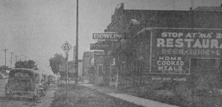 The bar and grill was originally located in the same building as the bowling alleys, but sometime in the mid-1940's, the layout changed when the adjoining building to the south at 25317 Van Dyke became vacant. This building had been occupied by William Sperlich's Funeral Parlor (and before that "C&R Chevrolet") who moved his business to a building on Van Dyke near Voerner Avenue. "Ma" took advantage of this opportunity and acquired the additional space for the bar and grill which was then connected to the bowling alley by an interior doorway. In later years, the business was known as "Ce-Lane Bar" and "Center Line Lanes". The entire block was eventually torn down in the late 1960's as part of the "urban renewal" of Center Line.
