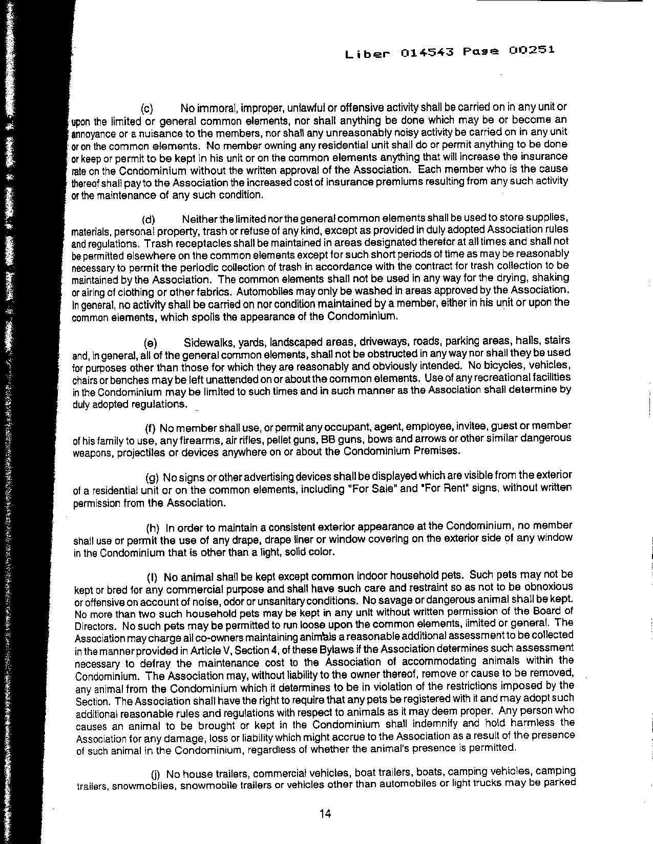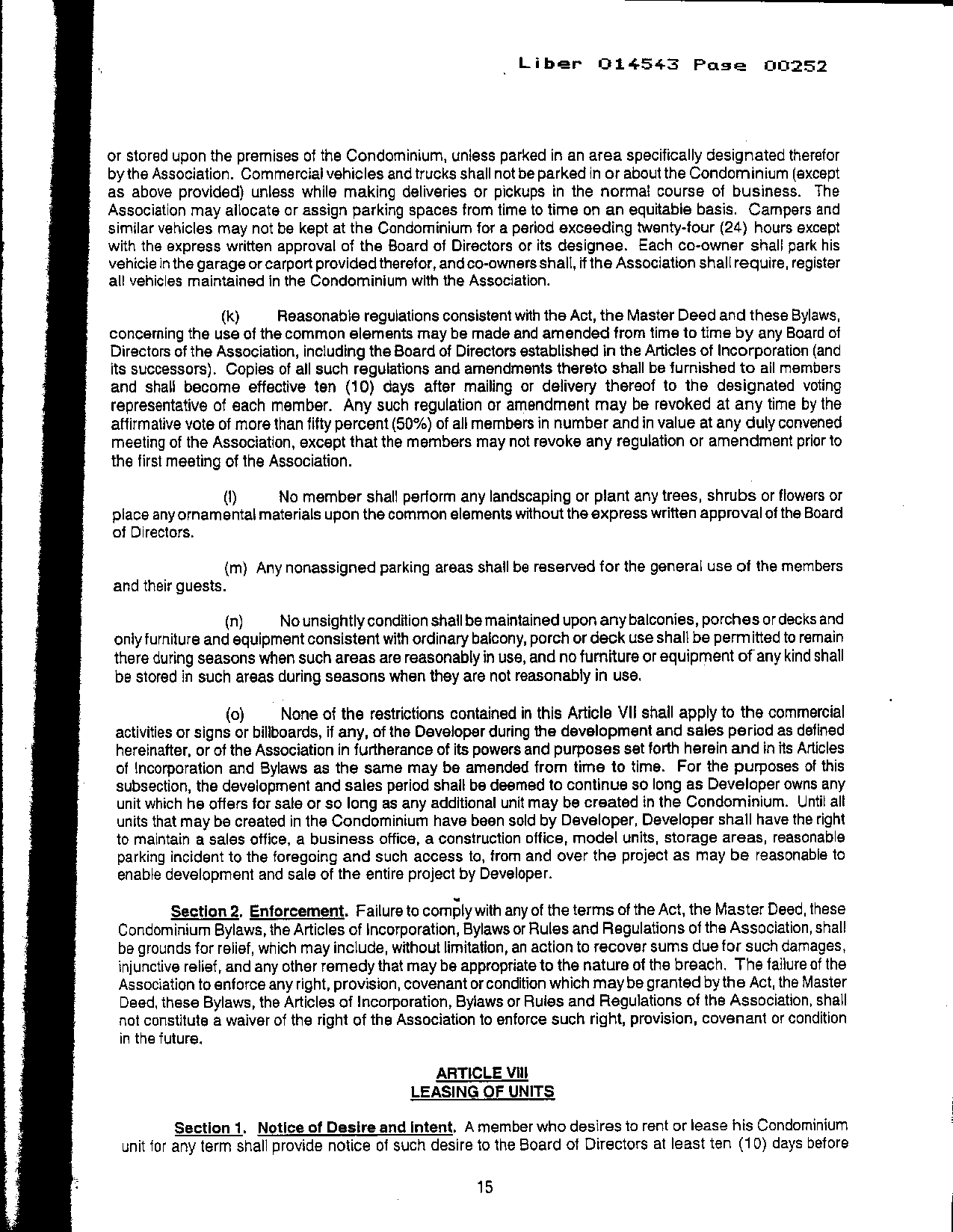 Article VII - Use and Occupancy Restrictions: Enforcement