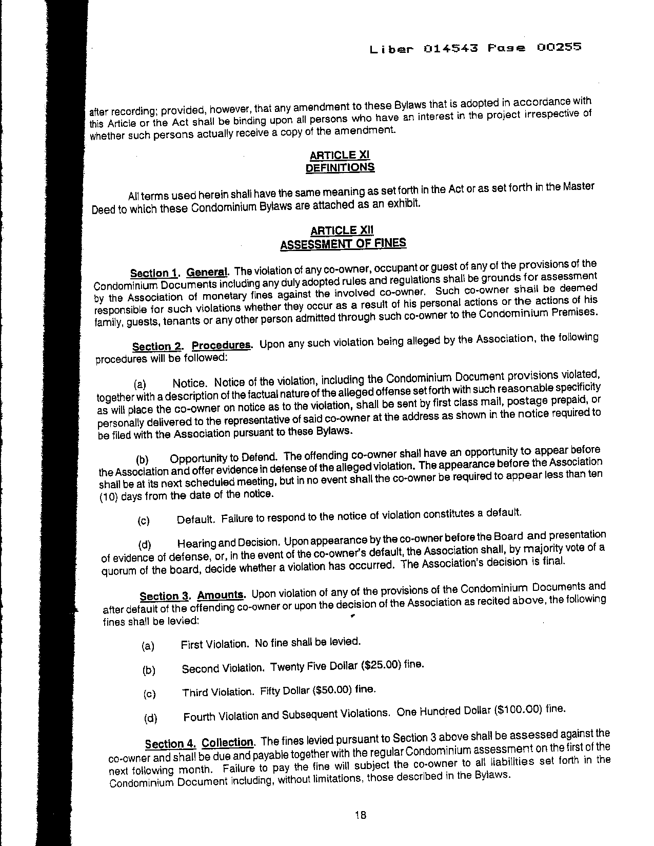 Article XII - Assessment of Fines