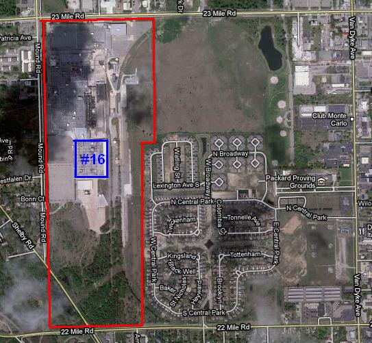 The Visteon parcel is outlined in red. Building #16 (blue) is the only building on the parcel which will not be demolished.
