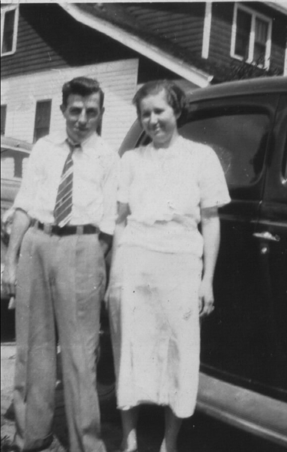 Lucille and Charles Grobbel in front of the Kunath home on Wiegand Blvd. in Center Line, MI (about 1940). |